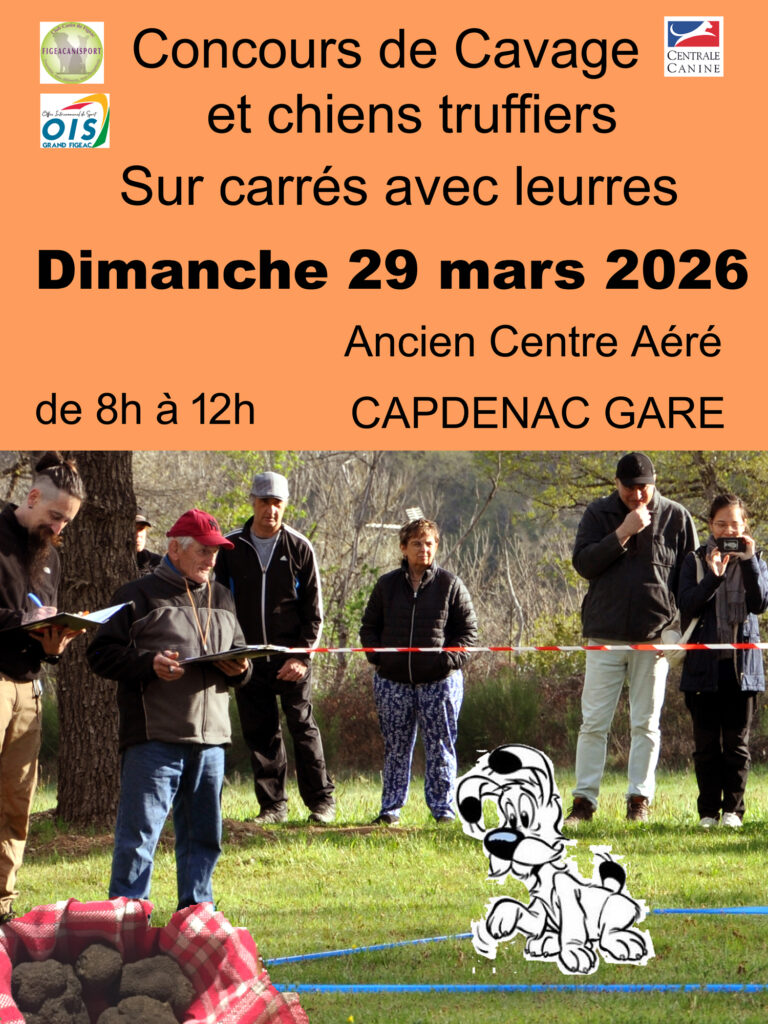 Nous organisons chaque année, des concours (cavage) ou épreuves de R.U. (recherche utilitaire), officiels et qualificatifs pour la coupe de France de la discipline.